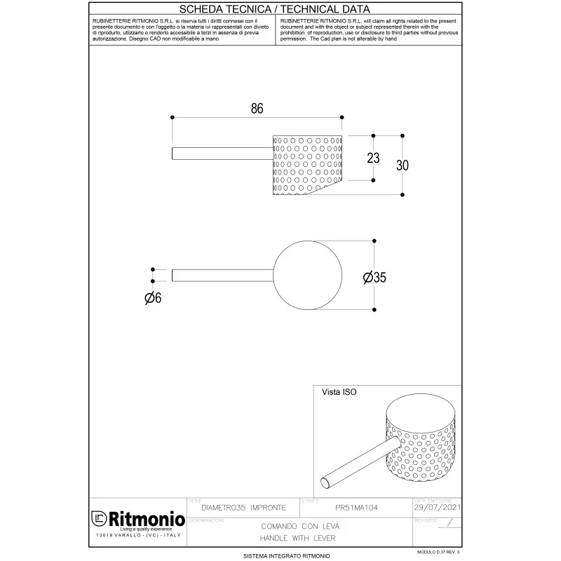 Ручка для смесителя Ritmonio Diametro35 Impronte хром PR51MA104CRL