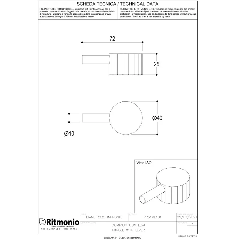 Ручка для смесителя Ritmonio Diametro35 Impronte хром PR51ML101CRL