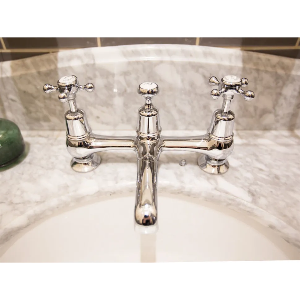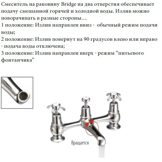Этот смеситель представляет собой незаменимое сантехническое оборудование к раковине небольших размеров. Благодаря своим изысканным вентилям модель станет удачным украшение вашей ванной комнаты.
