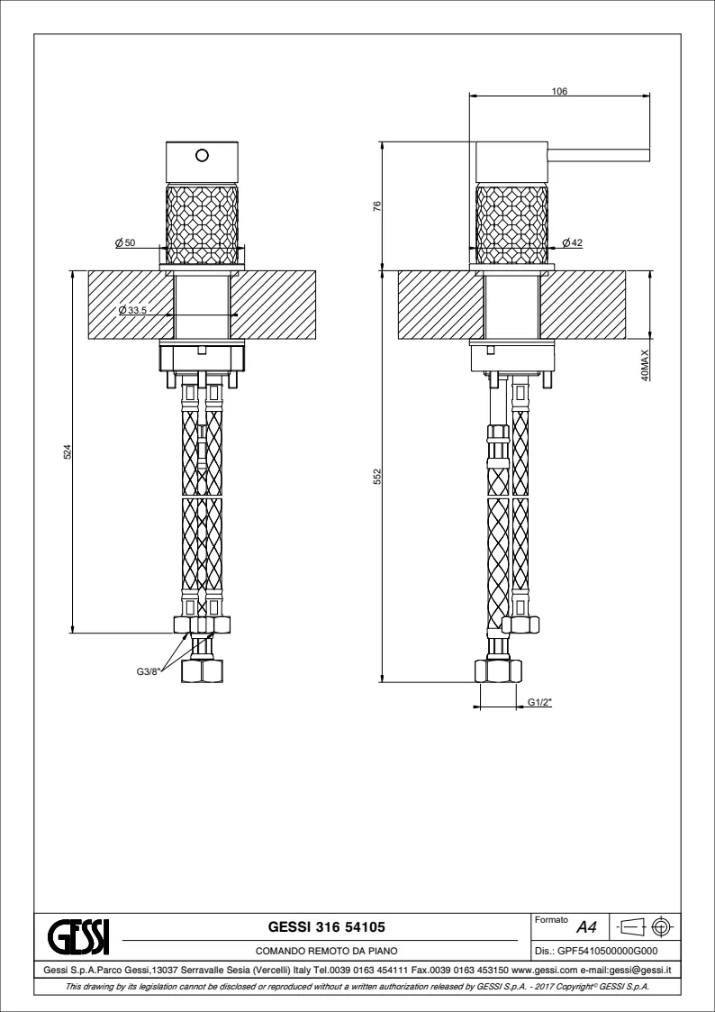 Рычаг удаленного управления Gessi Gessi316 54105.239 Steel Brushed