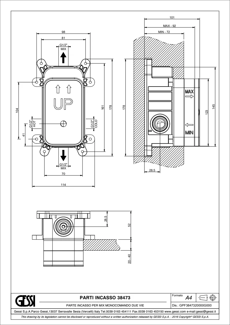 Скртая часть смесителя Gessi Emporio Via manzoni 38473.031 Chrome