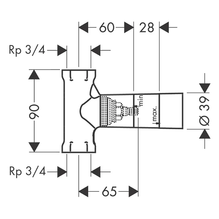 Скрытая часть запорного вентиля Axor шпиндельная, скрытый монтаж 3/4, расход воды 130 л/мин 15970180
