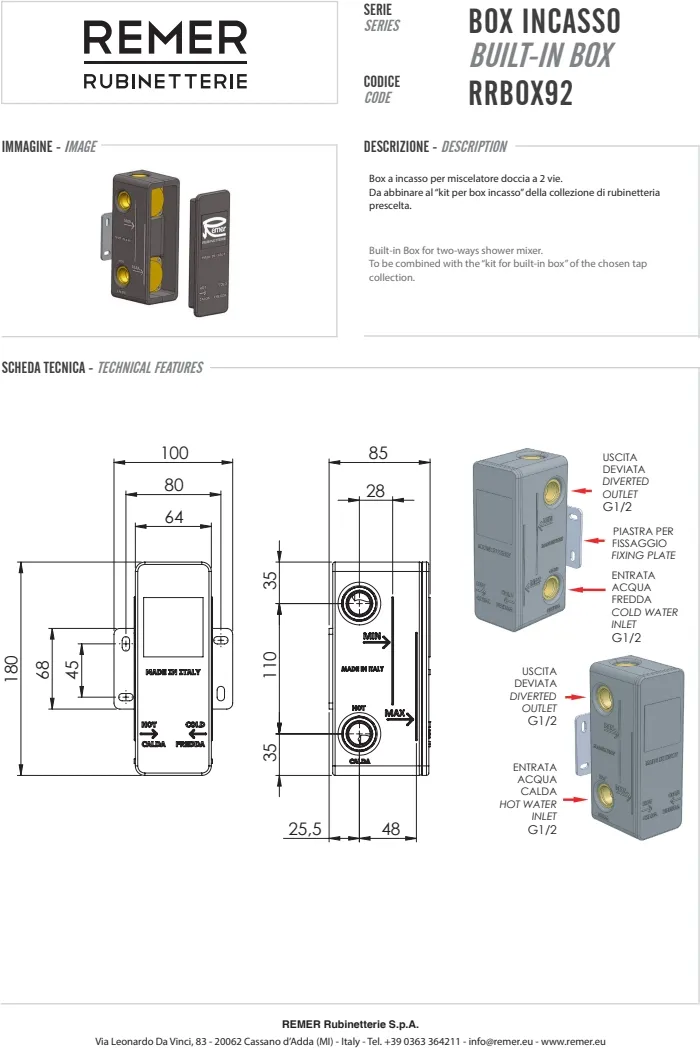 ВСТРАИВАЕМАЯ КОРОБКА для смесителя - 2 выхода, 1 вход.To be combined with the "kit for built-in box" of the chosen tap collection.
