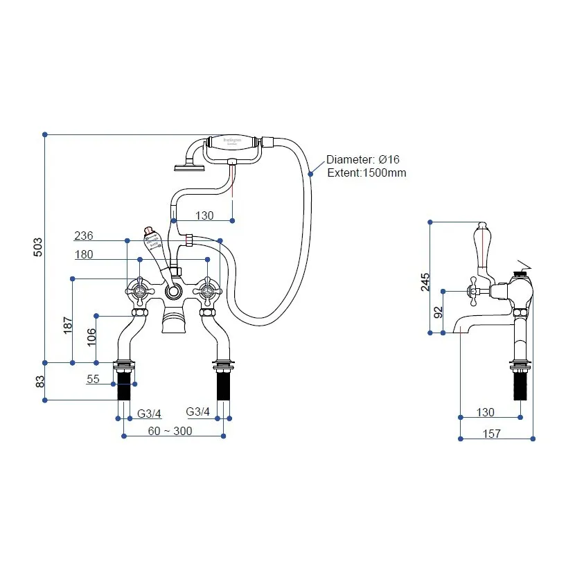 Смеситель для душевой ванны Claremont - настенный [CL17-QT BNKL]