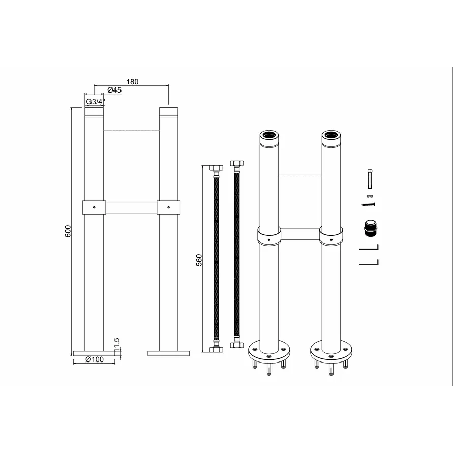 Трубы подвода воды Burlington Arcade ARCW7 NKL никель
