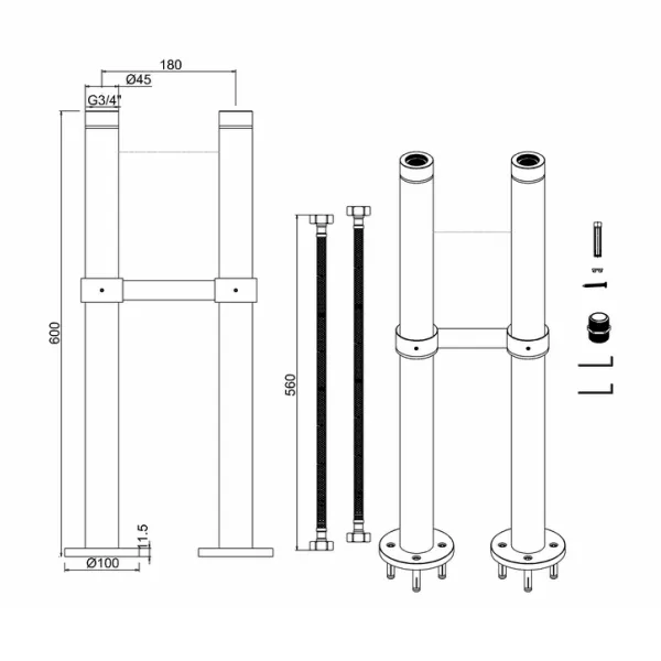 ;Трубы подвода воды с горизонтальной перемычкой идеально впишутся в обустройство санузла в традиционном классическом стиле и сделают гигиеническую чашу – центральным элементом интерьера.;
