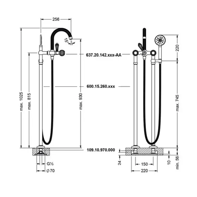 Вертикальные трубы к смесителю Joerger Cronos Crystal – это идеальное решение для создания стильного и функционального интерьера в вашей ванной комнате. Эти два шикарных угловых в пол патрубка изготовлены из высококачественного материала и имеют благородный цвет латуни. Их высота составляет от 77,5 до 80 см, что позволяет удобно подключить их к смесителю без дополнительных усилий. Благодаря стильному дизайну и прочным материалам, эти трубы станут не только надежным элементом системы водоснабжения, но и элегантным дополнением к интерьеру вашей ванной комнаты.