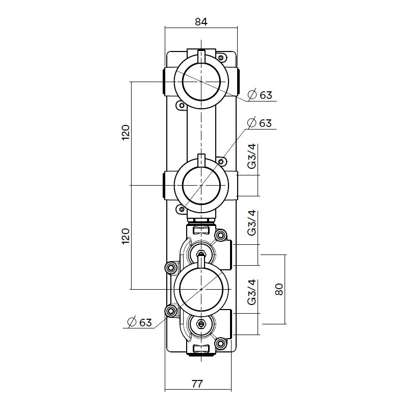 Встраиваемая часть QuadroDesign Универсальная смесителя термостатического из стены с 2-мя запо IN049