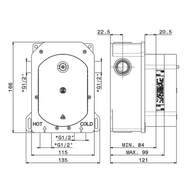 Универсальная внутренняя часть для термостатического смесителя Kerama Marazzi на 2 потока для душа 31061KM.00.000