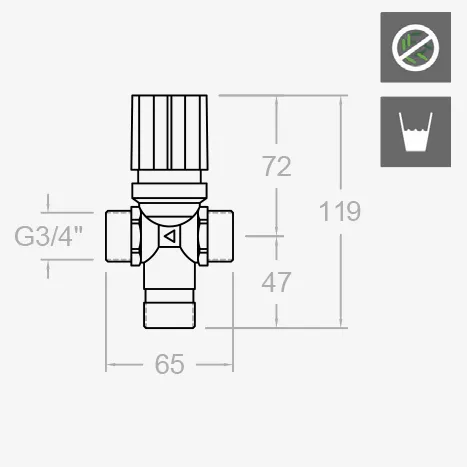 - Рекомендуемая температура горячей воды: 55 °С, с максимальной рабочей температурой до 65 °С (возможно кратковременное повышение до 90 °С).