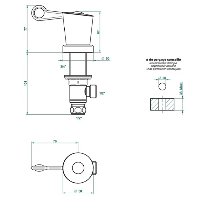 - Тип монтажа: на 1 отверстие