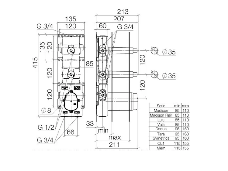 - 2x присоединение – внутренняя резьба 3/4" (холодное/горячее)