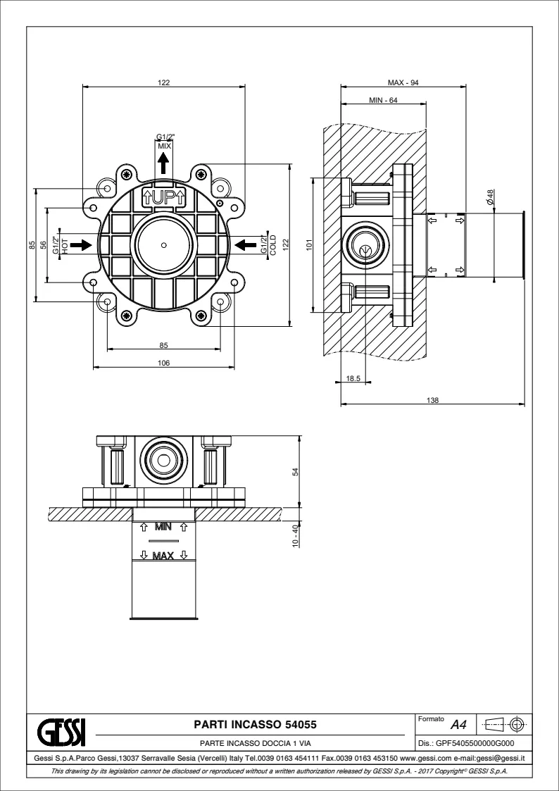 Встраиваемая деталь для настенного монтажа смесителя для душа / раковины, односторонняя.