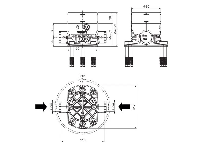 Глубина встраивания 63 мм / Регулировка встраивания 30 мм