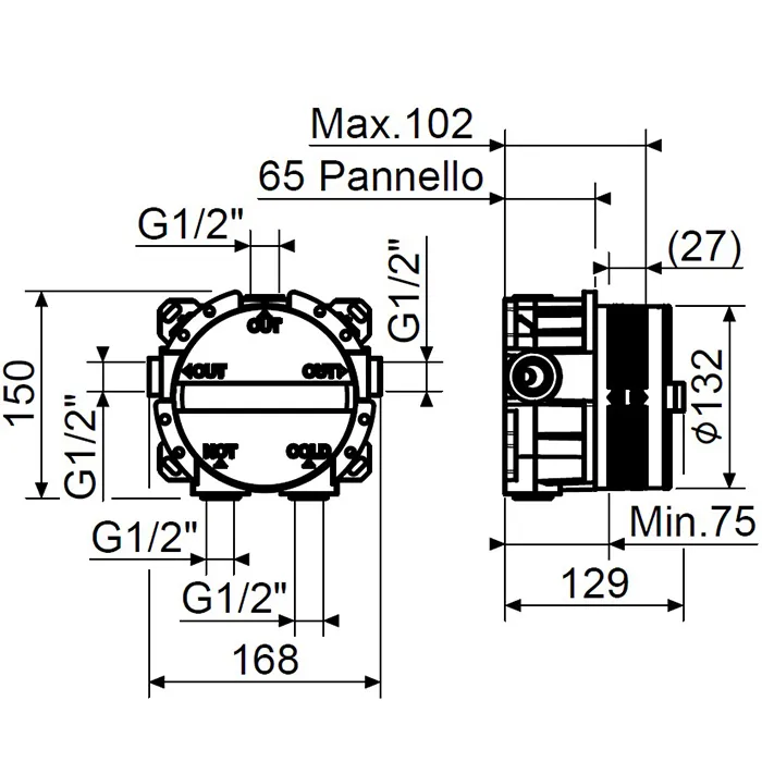 Внутренняя часть Plumberia Selection Psbox PS Box встраив.термост. есителя д.душа на 2-3 вых, PSB003