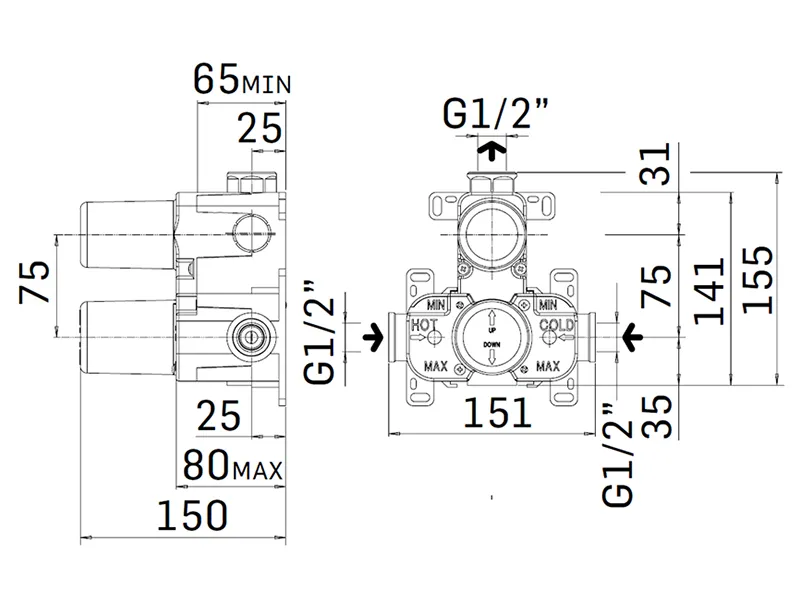 Внутренняя часть встраиваемого термостатического смесителя для душа Mamoli PICO 271100000027