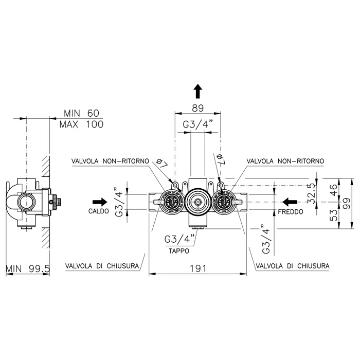 Внутреняя часть для термостатического смесителя Nicolazzi 3/4 , без запорного вентиля 4913 (новый арт C4913)