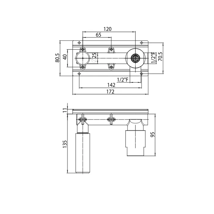 Встраиваемая часть Bossini Nobu монорычажного смесителя из стены Nobu с подключением к горячей-холодной воде