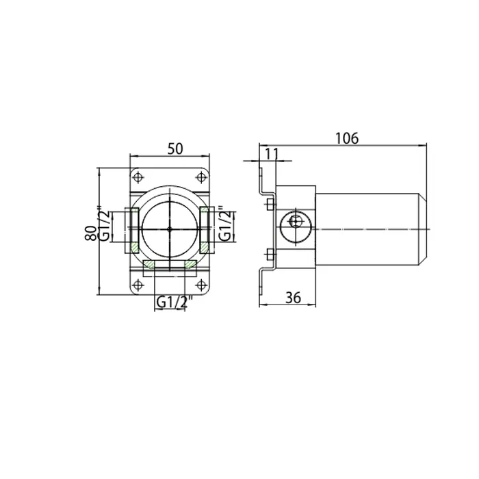 Встраиваемая часть Bossini Nobu переключателя Nobu на 2 выхода. подключение 1/2“ F.