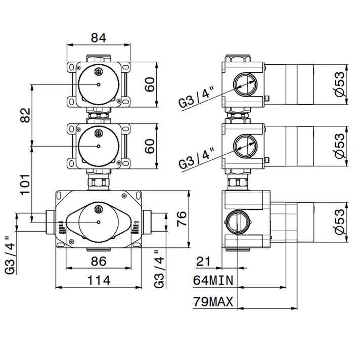 Встраиваемая часть для душа Newform 3/4 на 2 источника, 31063.00.000