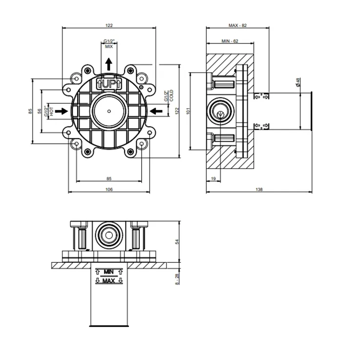 - Встраиваемая часть для однорычажного смесителя Gessi Emporio Emporio Via Manzoni