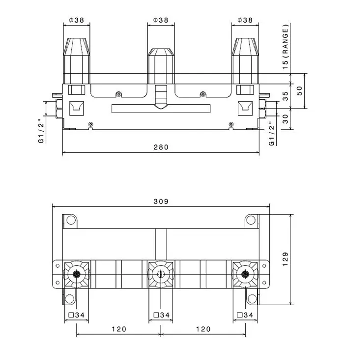 Встраиваемая часть для раковины Newform 3 отверстия 1/2, для смес. на рак. из стены, 27753.00.000