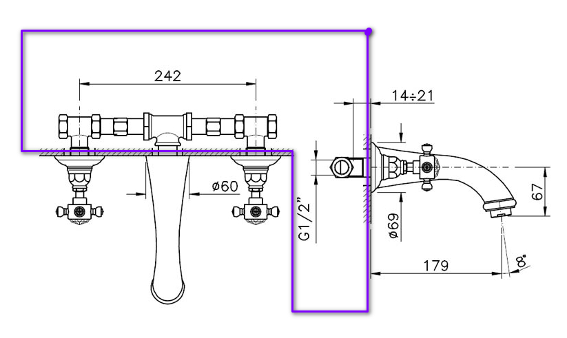 Встраиваемая часть Nicolazzi для смесителя со стены C2177DX