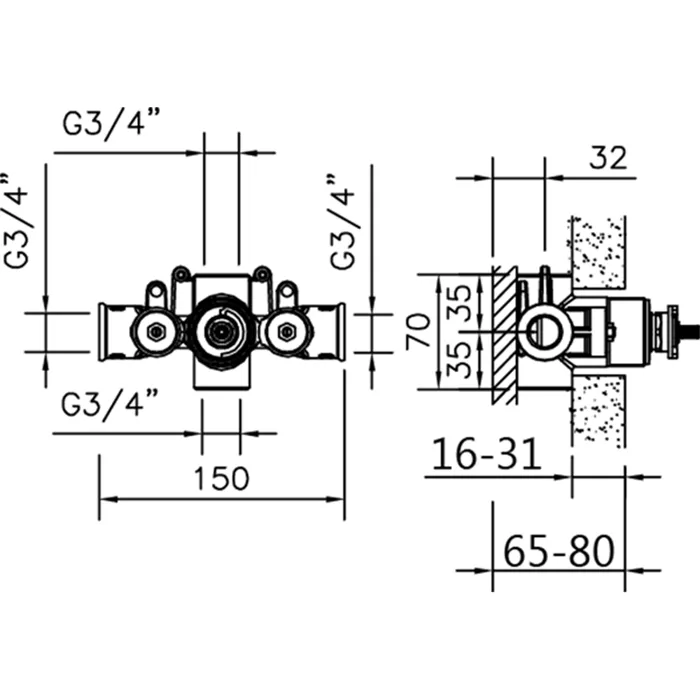 Встраиваемая часть термостатического смесителя Cisal 3/4 без запорного вентиля ZA00722004