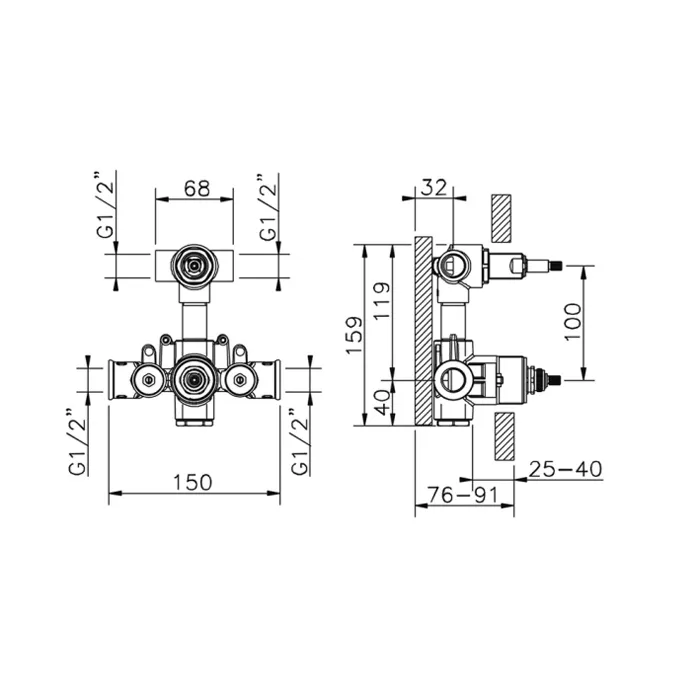 Встраиваемая часть термостатического смесителя с переключателем Cisal на 2 положения ZA01910104