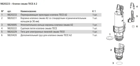 Клапан смыва для сливного бачка. Клапан смыва TECE A2. Для стандартных сливных бачков TECE (глубина установки 13 см), включая корзину клапана, комплект ограничительных колец и привод.