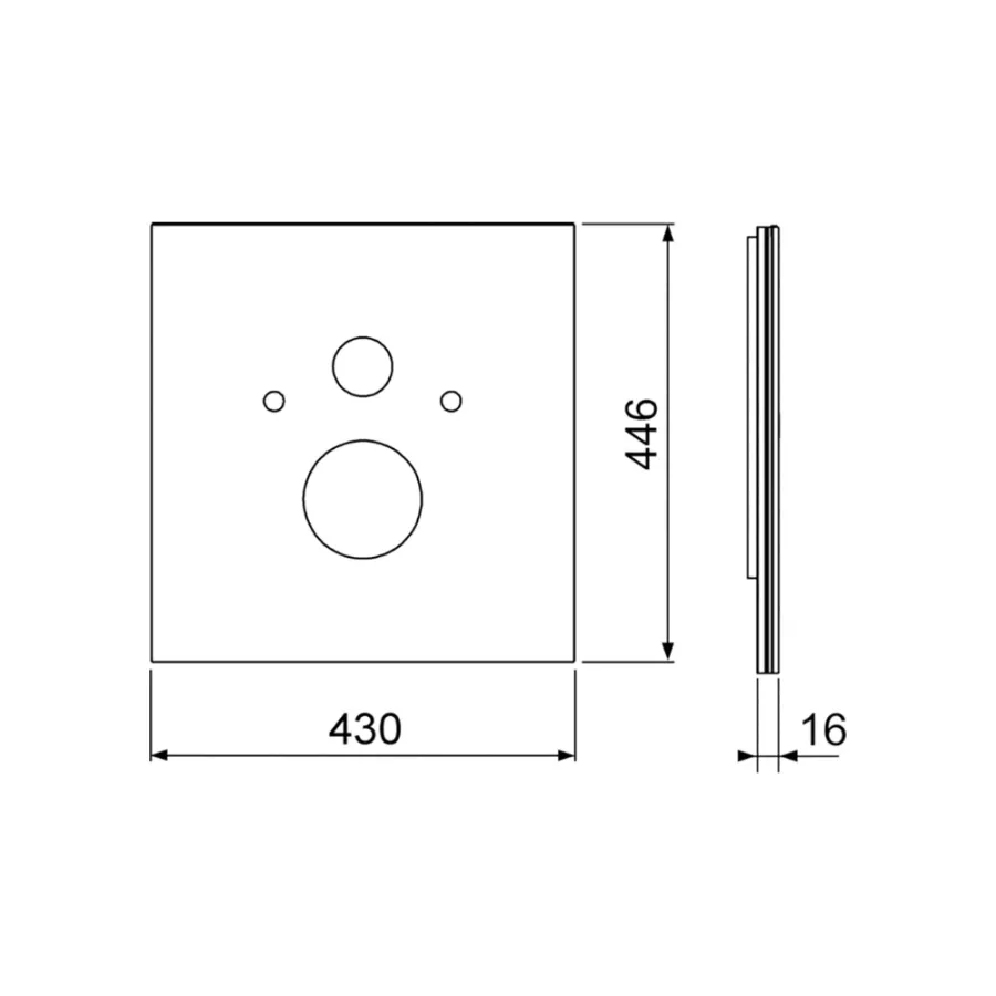 Нижняя панель для инсталляции - для подвесного унитаза (стекло чёрное). Стеклянная панель TECElux для установки стандартного унитаза. Нижняя стеклянная панель для установки стандартного унитаза, установочное расстояние 180 мм, в комплекте со звукоизолирующей прокладкой. Размеры (в x ш x г): 446 x 430 x 16 мм.