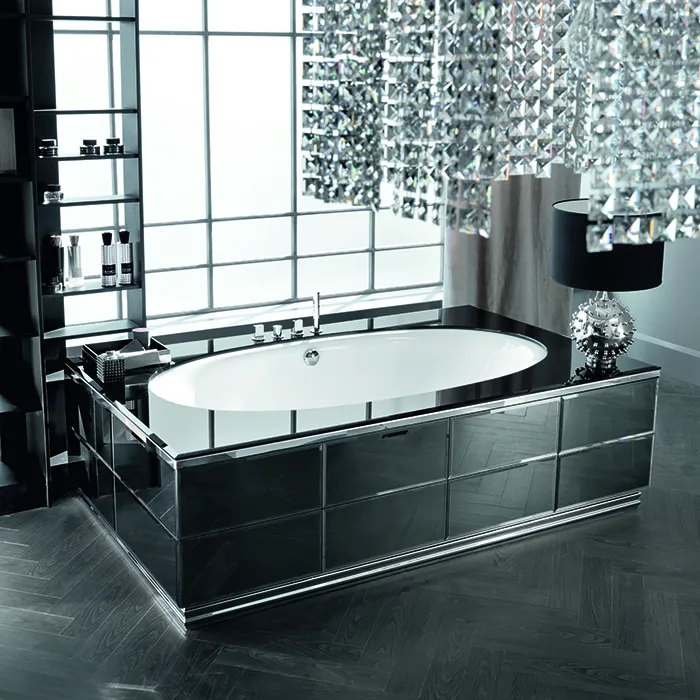 Основание для отдельностоящей ванны Vitage Milldue Edition Hilton 2150х1300х620, с подсветкой, цок. и подставка под стол сталь, отделка зеркало Fumè, 1828.71.98.LED