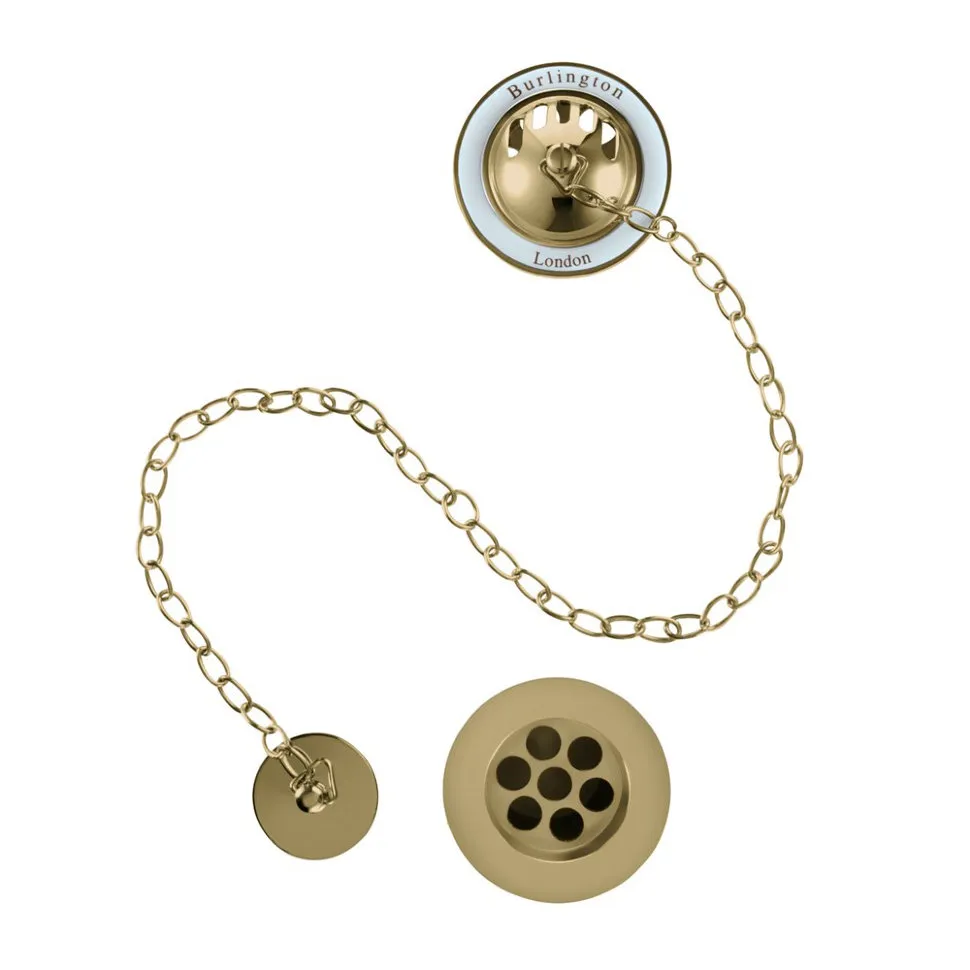 Потрясающий дизайн простых и привычных вещей является неотъемлемой частью концепции английской ванной комнаты от Burlington. Слив-перелив золотого цвета является великолепным тому подтверждением!