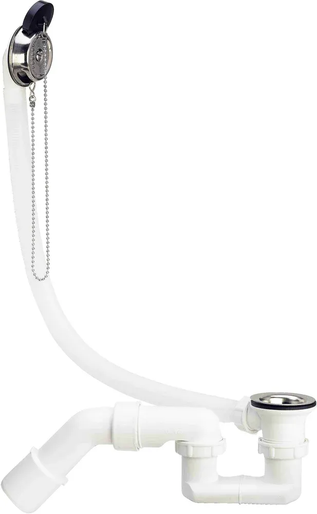 311537 Слив-перелив для стандартных ванн с цепочкой и пробкой (розетка нерж. сталь), с сифоном, 40/50, пластик