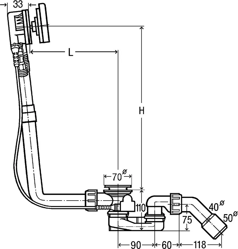723347 Multiplex Trio Visign MТ9 Слив-перелив C НАЛИВОМ для стандартных ванн 560 X 40/50, увелич уровня воды на 5 см, модель 6170.10, хром
