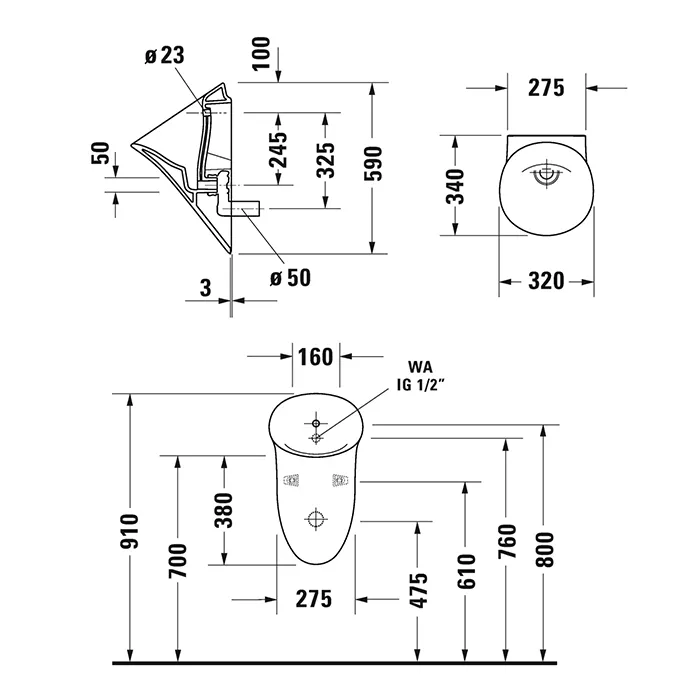 DURAVIT WHITE TULIP Писсуар 320х340 мм., без смывного края, с вытяжкой, подача воды сзади, сток гориз., без "мушки",с с HygieneGlaz, цвет белый