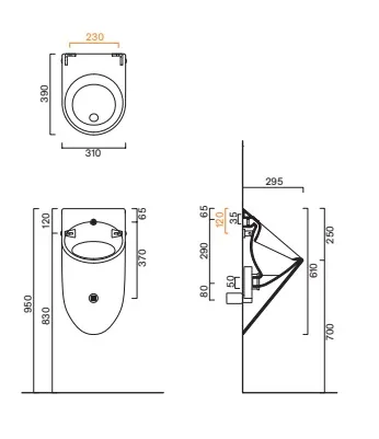 - Экономия воды: благодаря системе слива, использующей всего 1 литр воды, писсуар значительно снижает расход по сравнению с традиционными решениями.