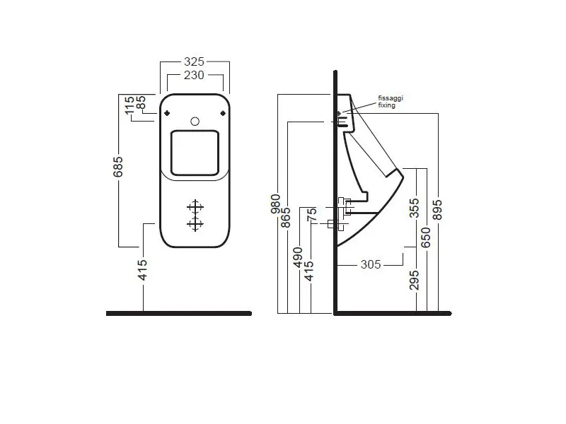 Писсуар подвесной HATRIA FUSION U YXE101 белого цвета, размер 68.5х32.5х30.5 см. Подключение смыва к писсуару (внутренний, скрытый), подключение слива в канализацию скрытое.Крепления входят в комплектацию. Крышка приобретается отдельно (YXZR01). Сифон приобретается отдельно.