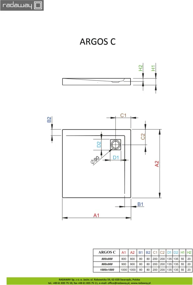 Плоский квадратный акриловый поддон. Предназначенный для монтажа без ножок — необходимо приклеить на строительный раствор или пену с низким коэффицентом расширения. Отверстие для сифона Ø90мм. Рекомендуемый сифон R399 — с квадратной крышкой.