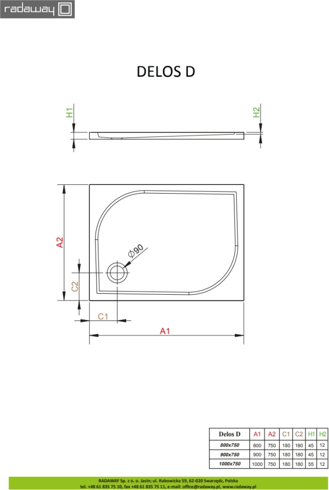 Плоский прямоуольный акриловый поддон. Предназначенный для монтажа без ножок — необходимо приклеить на строительный раствор или пену с низким коэффицентом расширения. Отверстие для сифона Ø90мм. Рекомендуемый сифон TB90, TB21, R500, R400 Slim.