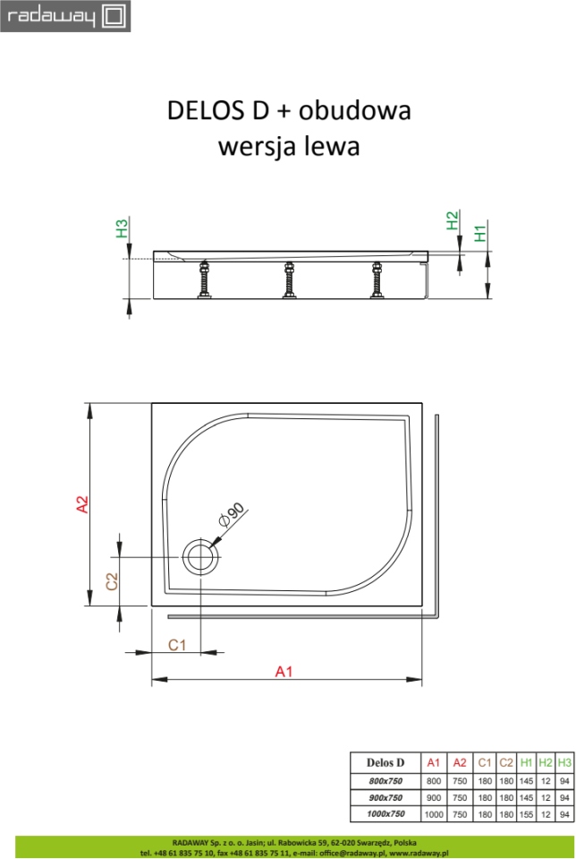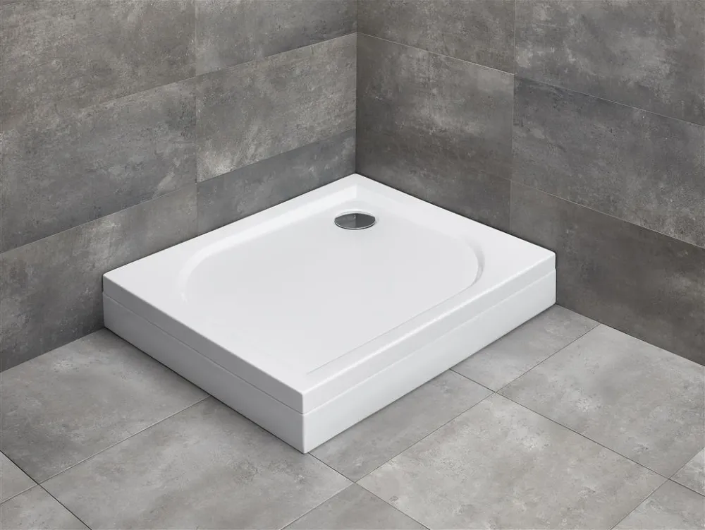 Плоский прямоугольный акриловый поддон. Предназначенный для монтажа без ножек — необходимо приклеить на строительный раствор или пену с низким коэффицентом расширения. Отверстие для сифона Ø90мм. Рекомендуемый сифон TB90, TB21, R500, R400 Slim.