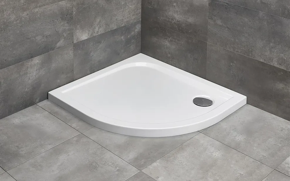 Плоский, полукруглый асимметричны акриловый поддонй- радиус r=550мм. Предназначенный для монтажа без ножок — необходимо приклеить на строительный раствор или пену с низким коэффицентом расширения. Отверстие для сифона Ø90мм. Рекомендуемый сифон TB90, TB21, R500, R400 Slim.