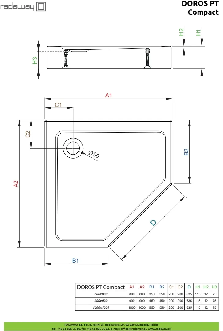 Душевой поддон Radaway Doros PT Compact SDRPTP9090-05