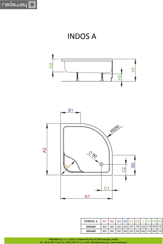 Глубокий акриловый поддон со съемной панелью, для установки на ножках (в комплекте). Отверстие под сифон Ø 50 мм. Рекомендуемые сифоны TB50, 578.