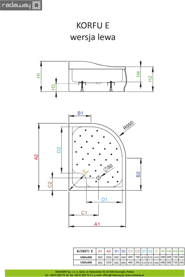 Глубокий, акриловый поддон со съемной панелью. Для установки на ножках (в комплекте). Отверстие под сифон Ø 50 мм. Рекомендуемые сифоны: B602R, R135.