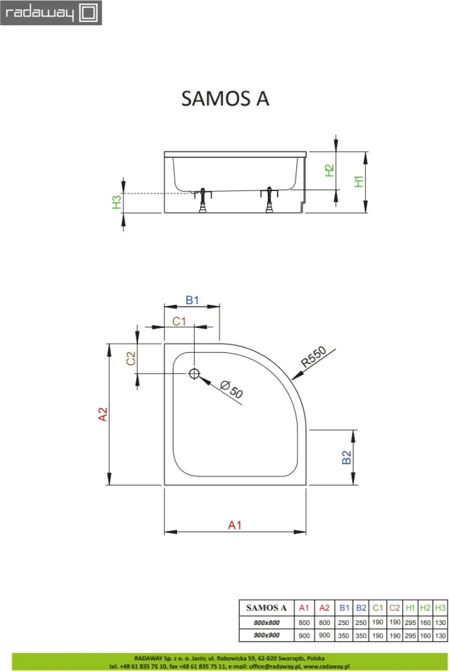Акриловый поддон со съемной панелью, для установки на ножках (в комплекте). Отверстие под сифон Ø 50 мм. Рекомендуемые сифоны TB50, 578.
