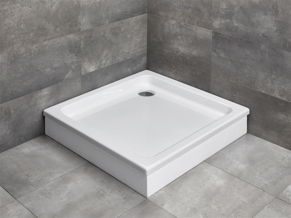 Акриловый поддон на базе из пенопласта (без ножек) для облицовки плиткой или мозаикой. Эффективная изоляция шума падающей воды. С первого прикосновения создается осущение тепла, поддон легко нагревается и медленно охлаждается. Цельнолитая панель. Отверстие под сифон Ø 90мм. Рекомендуемыe сифоны: TB90, TB21, R500, 690.