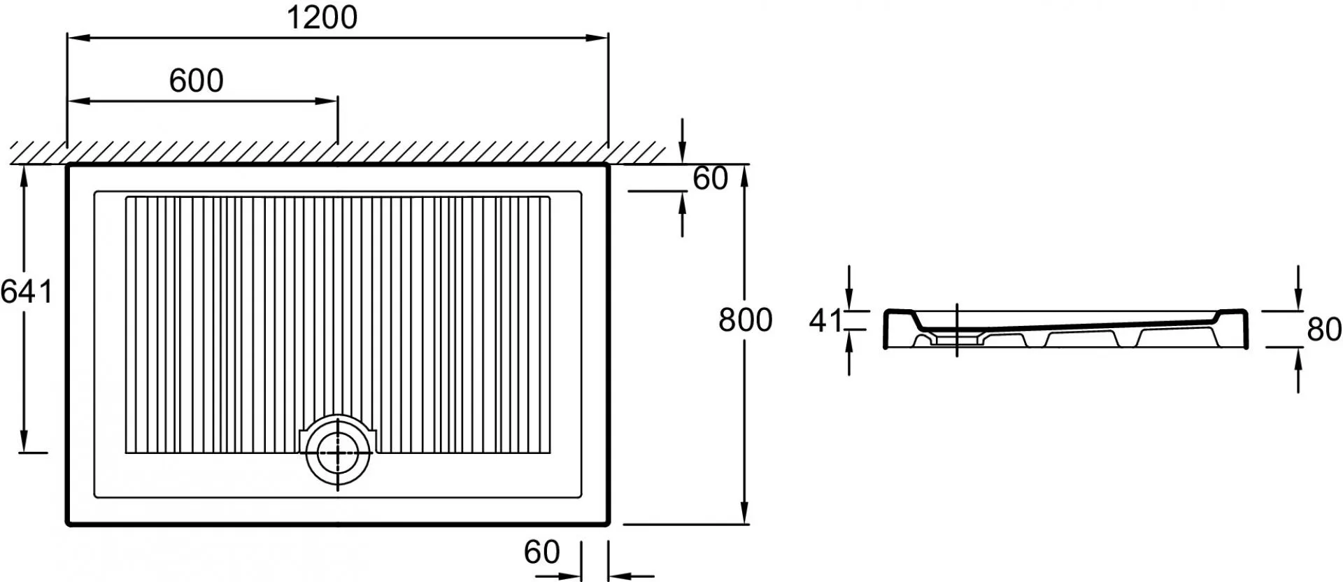Душевой поддон 120x80 Jacob Delafon Kyreo EN127-00 слив 90 мм, белый