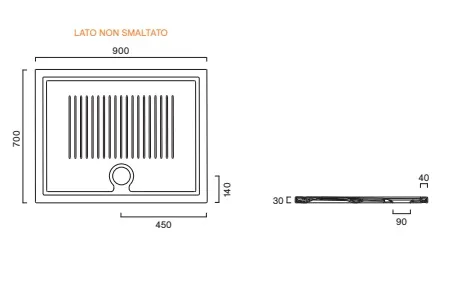 Душевой поддон Catalano H3 Ceramic имеет размеры 90×70 см и высоту 3 см. Благодаря своей конструкции, поддон может быть установлен на любую поверхность — на полу или вровень с ним. Его чистый белый цвет (Bianco lucido) и антискользящий рельефный декор обеспечивают безопасность и комфорт.