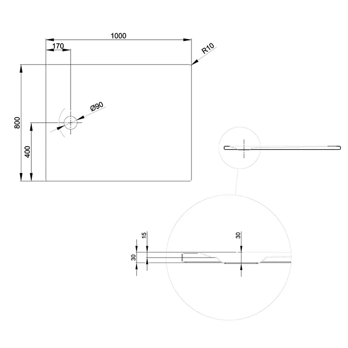 Его продуманная конструкция также обеспечивает надежный слив. Слив, расположенный близко к стене на узкой стороне, обеспечивает беспороговый доступ с трех сторон.
